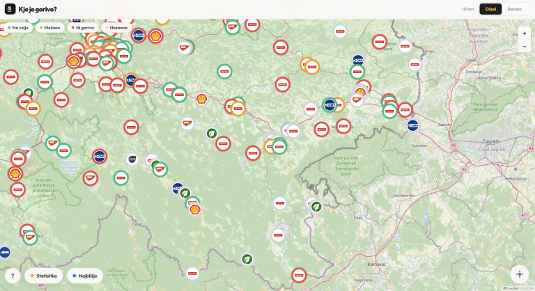 Interaktivni zemljevid, ki temelji na sprotnih prijavah uporabnikov, omogoča vpogled v stanje na terenu in postaja eno ključnih orodij za voznike. Ti lahko v vsakem trenutku preverijo, kje je gorivo še na voljo in kje ga je že zmanjkalo.