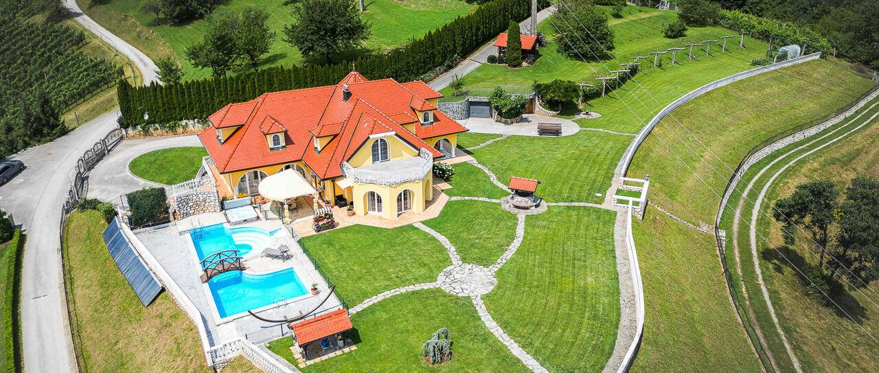 Na Vrhu pri Boštanju se nahaja ekskluzivna vila z bazenom in čudovitim razgledom. Približno dvajset let star objekt je naprodaj za vrtoglavo ceno.