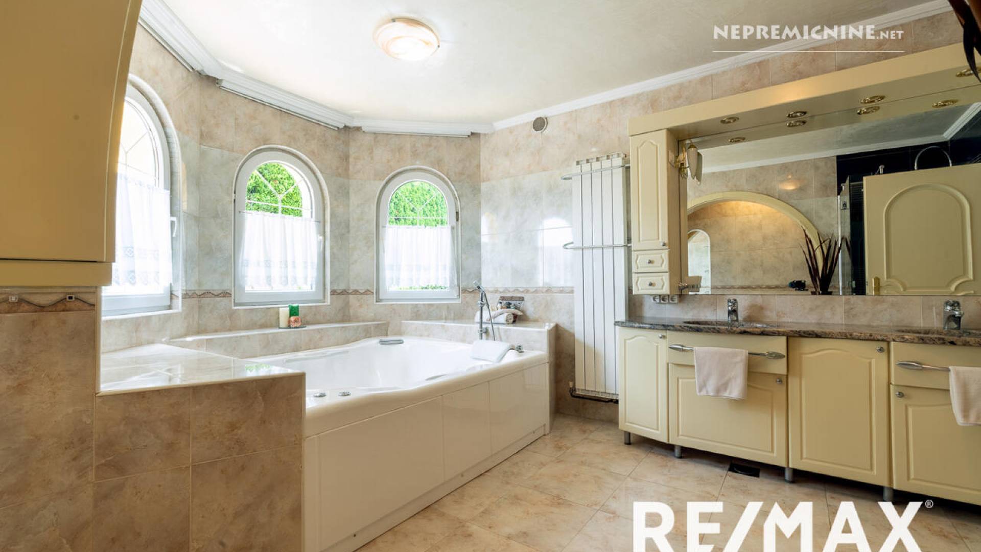 Bazen, jacuzzi za šest oseb, vinska klet za dvajset oseb, pet spalnic, tri kopalnice in še eno dodatno stranišče.
