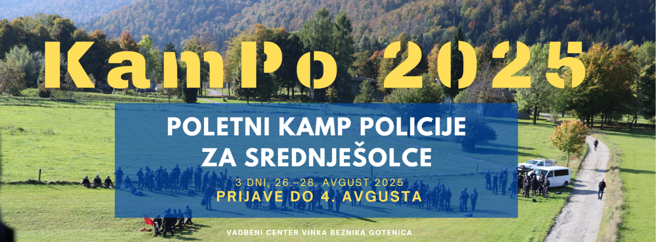 Za mlade državljane Slovenije so v Policiji letos pripravili prvi poletni policijski kamp KamPo, na katerega vabijo vse srednješolce, ki se zanimajo za policijo, poklic policista in možnosti za zaposlitev v Policiji po srednji šoli. V zelenem, sproščujočem okolju odmaknjene Gotenice se bodo lahko preizkusili v vlogi policistov in kriminalistov.