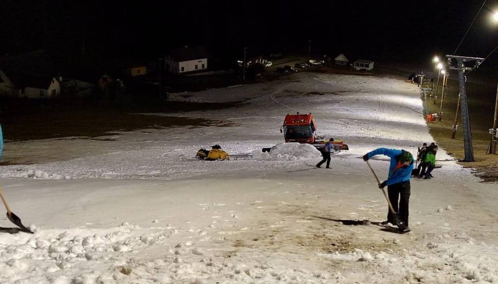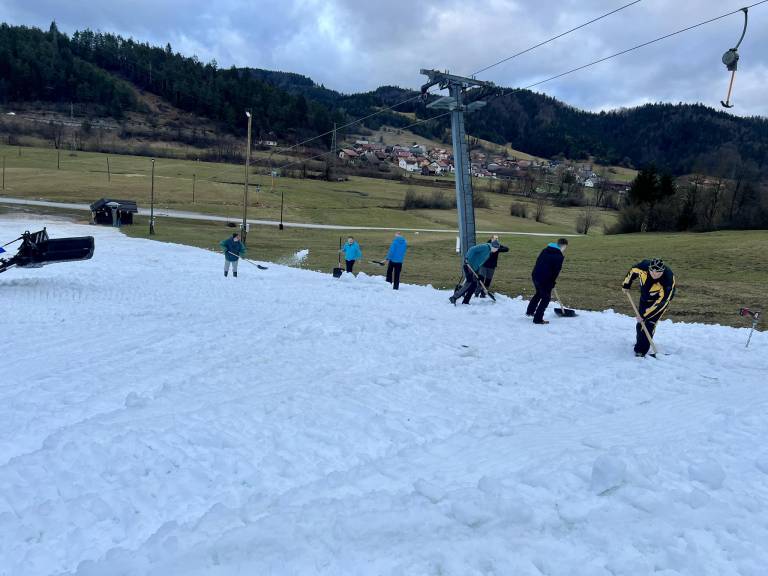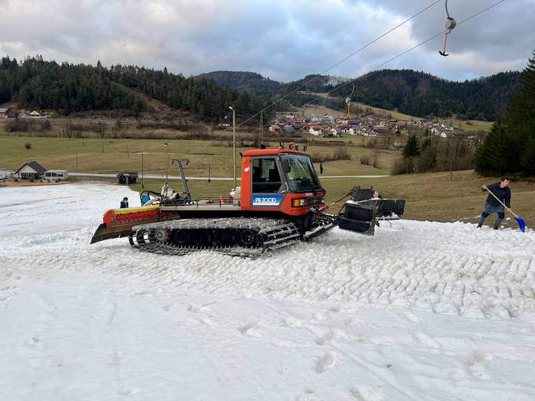 Medtem ko bi marsikdo že dvignil roke nad situacijo in se pač sprijaznil s predčasnim zaključkom obratovanja, so organizatorji pošteno pljunili v roke in progo iz dneva v dan pripravljali za mlade smučarje.