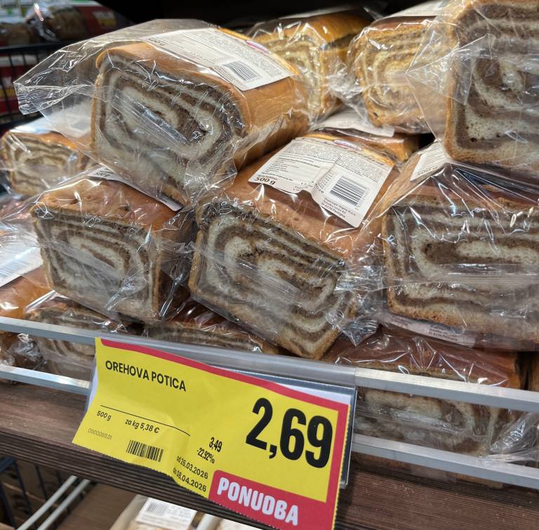 Najvišje cene smo našli v Tušu, kjer orehova ali makova potica lahko doseže 7,99 evra, medtem ko so nekatere akcijske različice na voljo že za 3,28 evra.