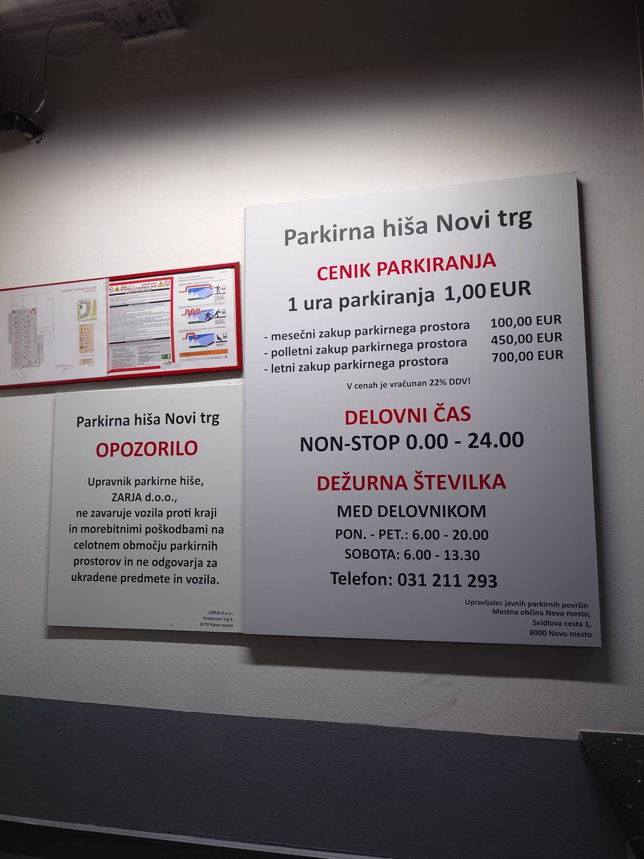 Pod omenjenim parkiriščem pa je tudi Parkirna hiša Novi trg, ki je najdražja med naštetimi. Za eno uro boste odšteli en evro, prav tako za vsako naslednjo.