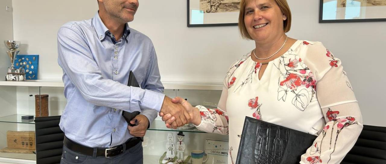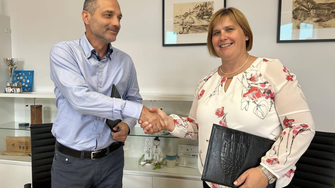 Metliška županja Martina Legan Janžekovič je z direktorjem Komunale Metlika Bojanom Krajačičem podpisala pogodbo o obnovi javnega vodovoda.