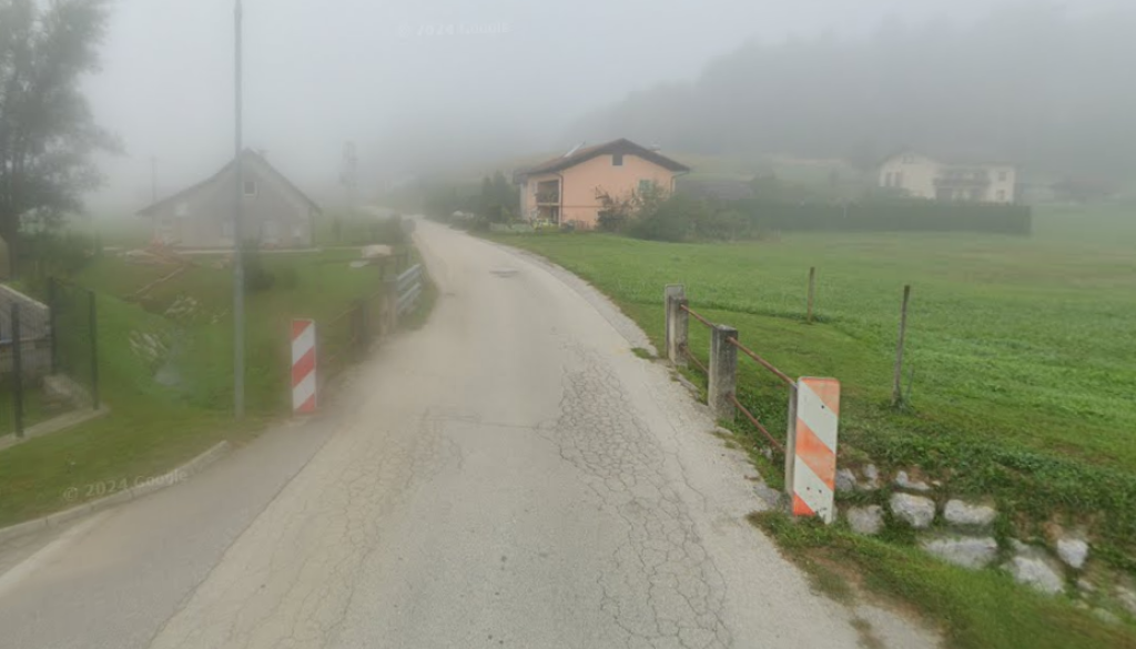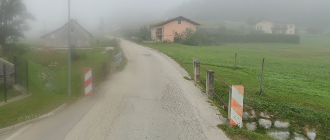 Tudi lokalna cesta, ki vodi preko mostu, je v slabem stanju – delno brez robnikov, z nestabilnimi bankinami in večkratnimi sanacijami zaradi komunalnih posegov.