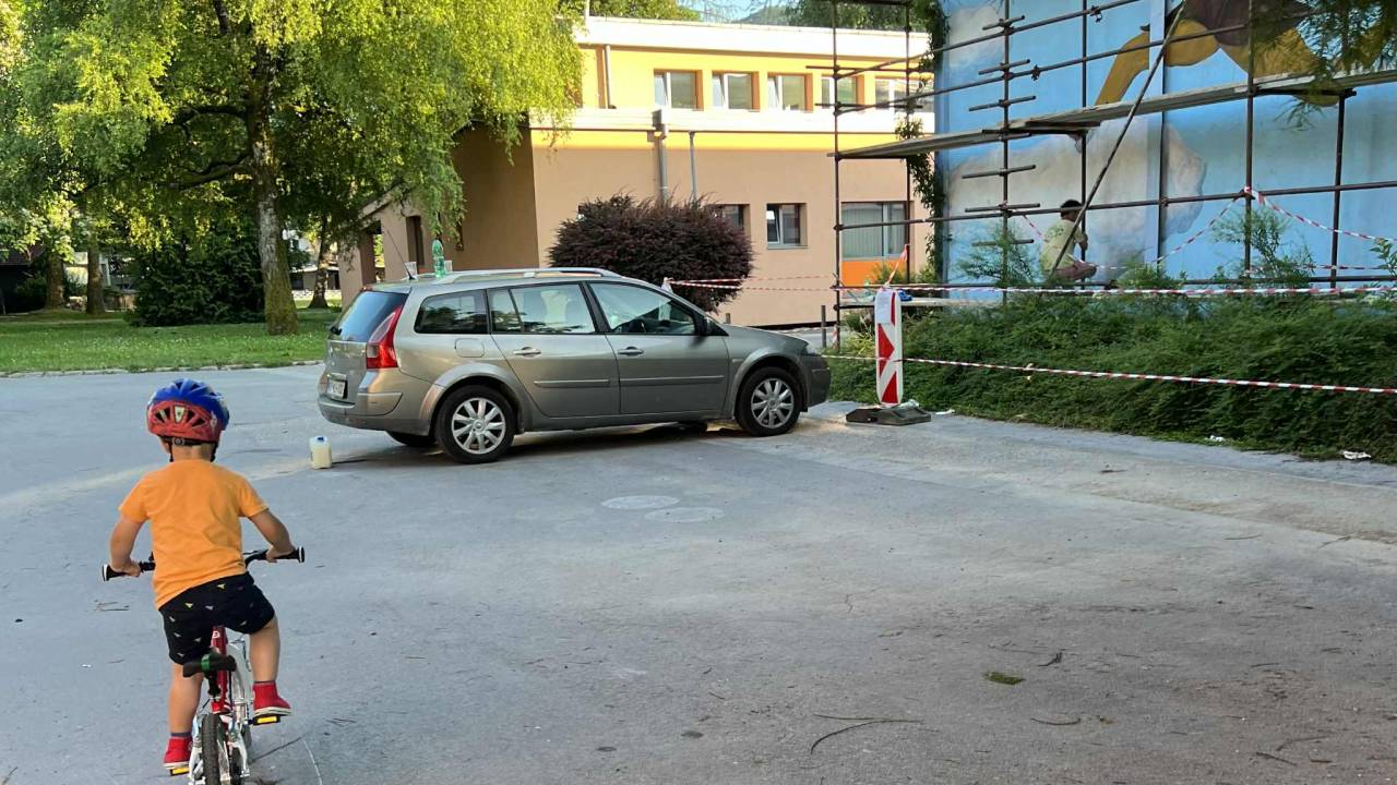 Tako bo prostor med srednjo šolo in Knjižnico Kočevje en mesec - od osmega septembra do osmega oktobra - zaprt za promet in preimenovan v Šolsko ulico, ki bo namenjena pešcem, kolesarjem, igri in druženju.