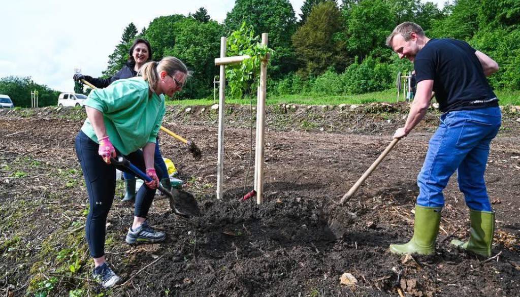 Župan Gregor Macedoni in sodelavci Mestne občine Novo mesto so skupaj z Gozdnim gospodarstvom Novo mesto v Portovalu zasadili 30 novih dreves.