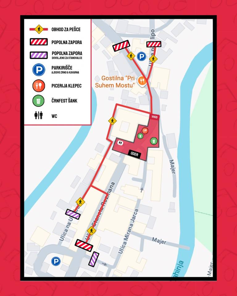 Organizatorji festivala Črnfest so sporočili, da bo zaradi zaključnega koncerta v soboto, 23. avgusta, zaprto staro mestno jedro Črnomlja. Popolna zapora bo trajala od sobote ob 6. uri zjutraj do nedelje, 24. avgusta, prav tako do 6. ure.