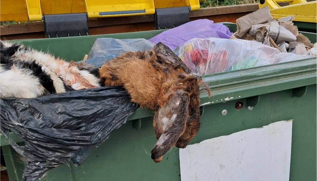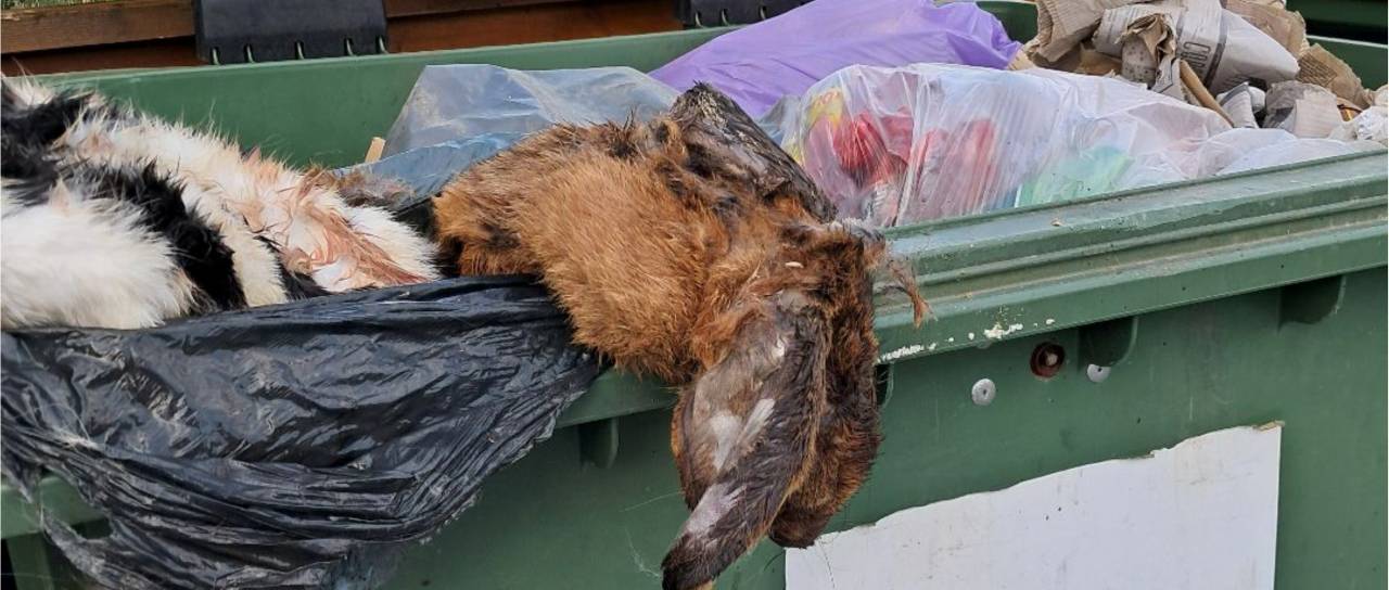 Iz Stražnjega vrha pri Črnomlju so fotografije, ki jih je težko pogledati. Delavci Komunale Črnomelj so na svojih družbenih omrežjih delili fotografijo zabojnika, v katerega je nekdo odvrgel poginule zajce.