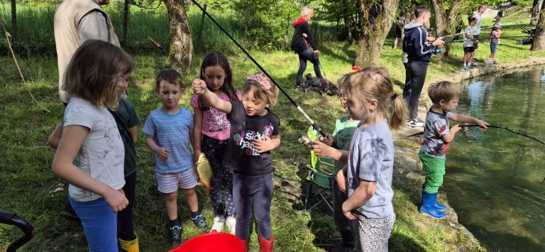 V Koblarjih so na malem jezercu organizirali celo tekmovanje v ribolovu za otroke.