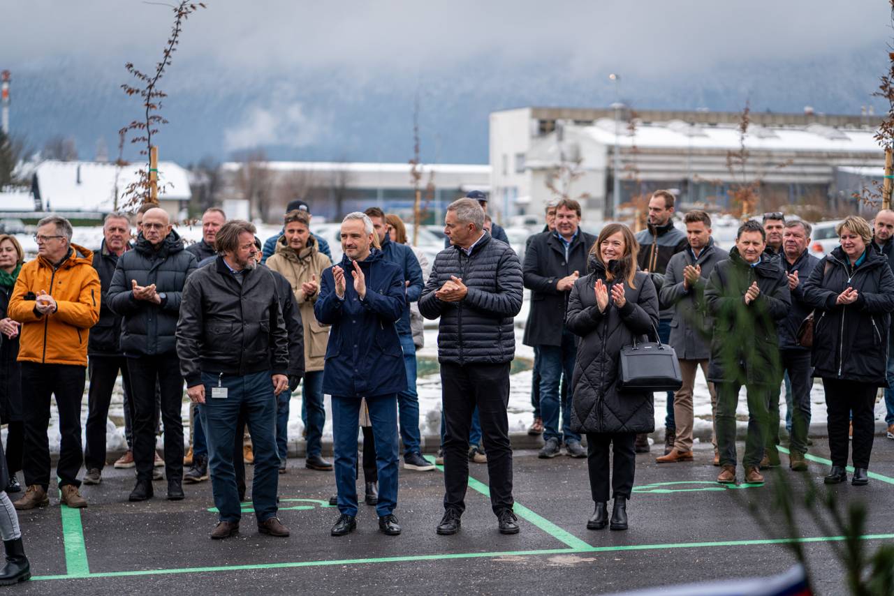 Prav tako so poskrbeli za parkirišče z 32 parkirnimi mesti, pri čemer jih je sedem z nadstrešnico za souporabo avtomobilov, štirje so za polnjenje električnih vozil, 18 pa jih je zelenih iz travnih plošč.