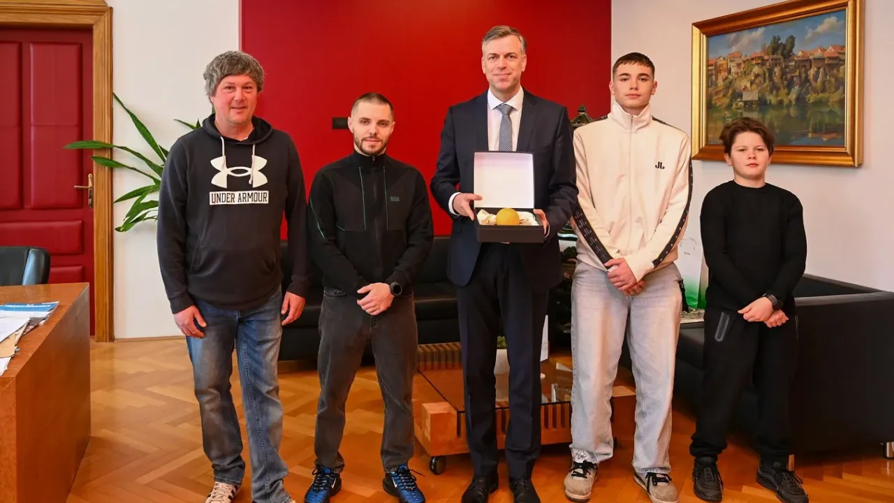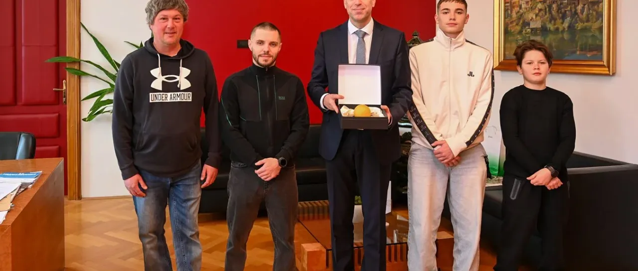 Na rotovžu ju je sprejel novomeški župan Gregor Macedoni in jima čestital za njune dosežke.