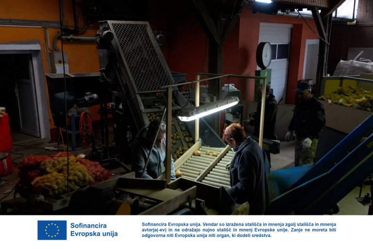 Ob našem obisku je razširjena družina pomagala pripraviti kar 13 palet domačega krompirja za enega večjih slovenskih trgovcev.