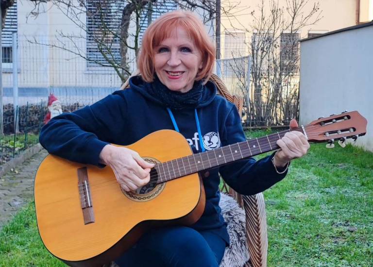 Že šestnajst let namreč kot prostovoljka v času božičnih praznikov obiskuje Onkološki inštitut Ljubljana in tistim, ki se zdravijo v tej bolnišnici, s svojim glasom in brenkanjem na kitaro, prinaša tolažbo in veselje.