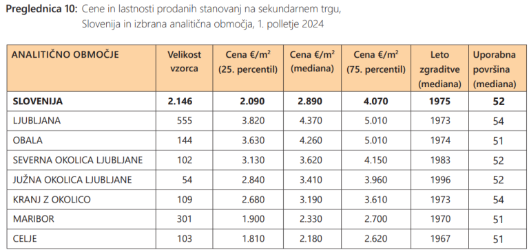 Pregled primarnega trga stanovanjskih nepremičnin v Sloveniji za prvo polletje 2024.