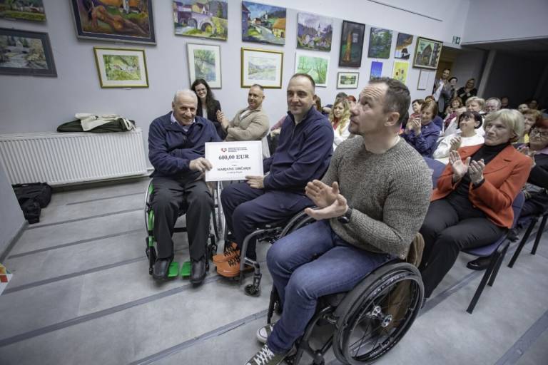 Jože Okoren, predsednik Društva paraplegikov Dolenjske, Bele krajine in Posavja, pa je Marjanu predal donacijo v višini 600 evrov.
