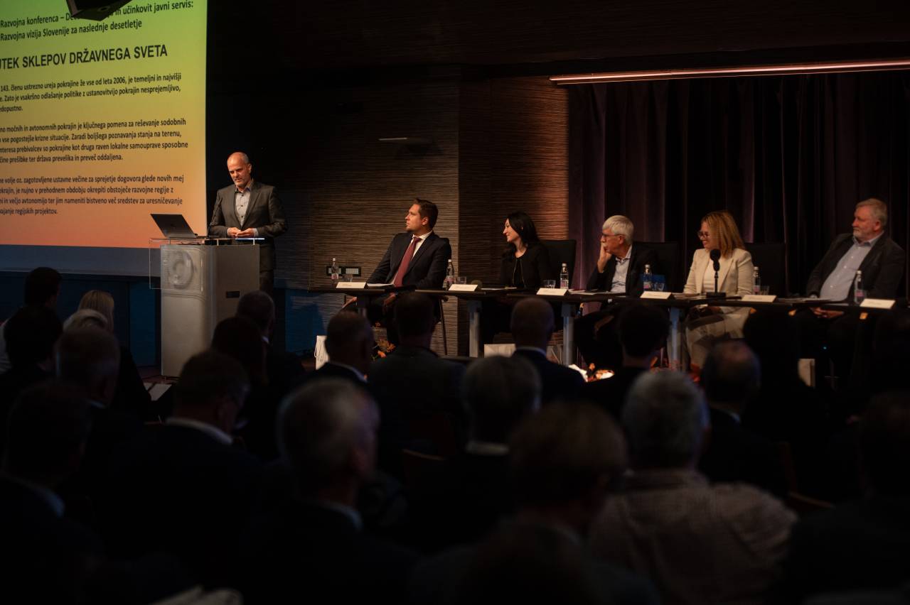 Za njim je pred mikrofon stopil minister za kohezijo in regionalni razvoj Aleksander Jevšek. Za dvig je potrebna močna država, ta pa je močna le toliko, kot so močne njene razvojne regije. Gre torej za resen izziv, ki pa bi ga lahko rešili v naslednjih desetih letih.