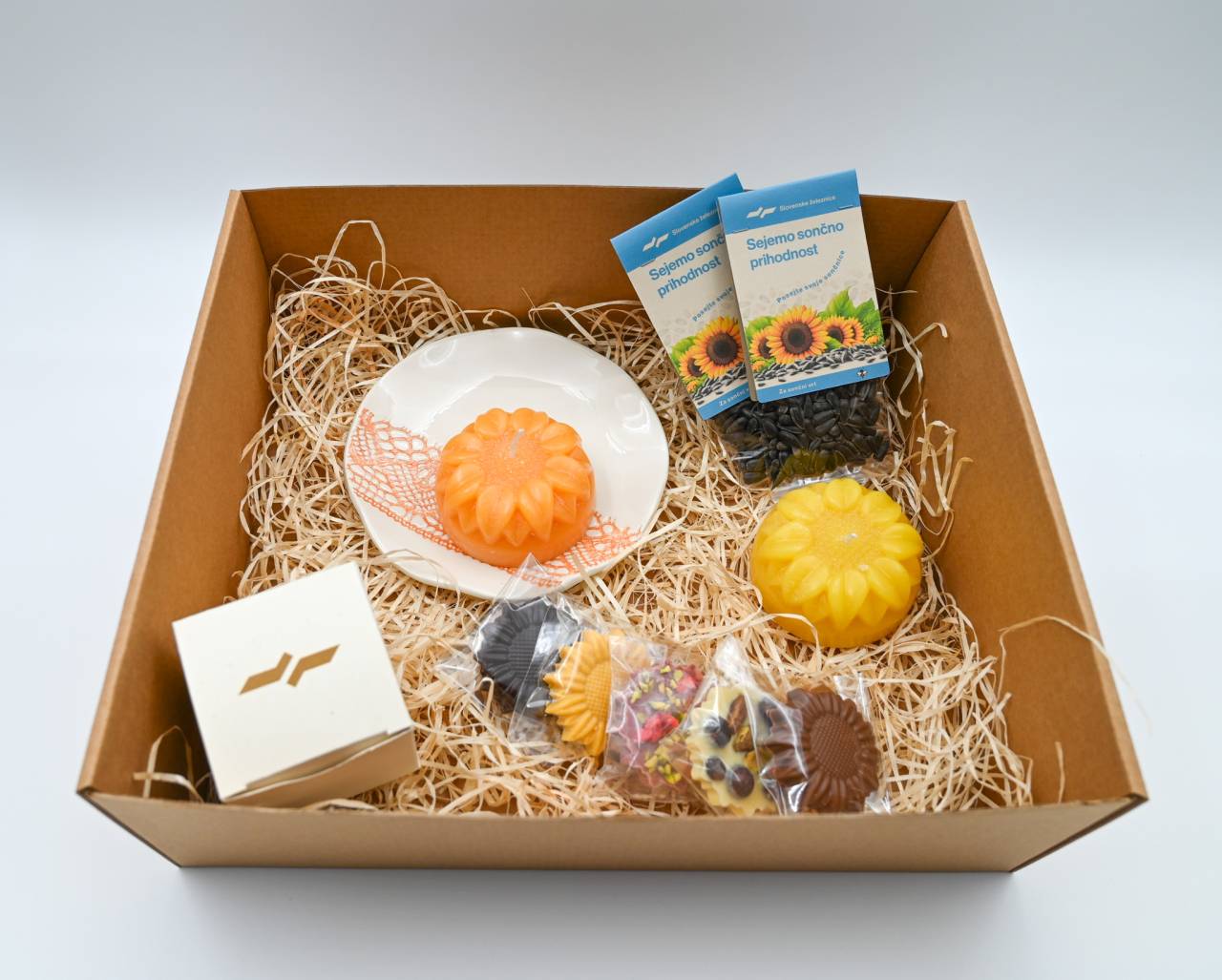 Sončna kompleta, ki sta nastala iz vseslovenskega gibanja Sejemo sončno prihodnost. Gre za darila, ki nosijo pozitivno sporočilo: da lahko vsak od nas s svojim delom in gesto širi toplino naprej.