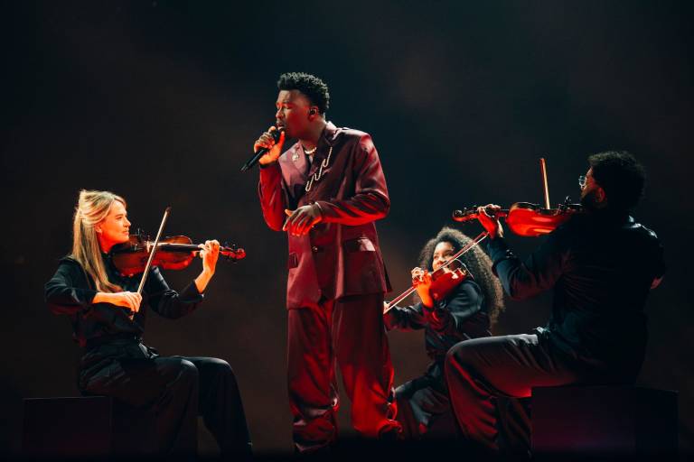 Zadnji nastop večera je prinesel nočni utrip. Theo Evan je nastop za pesem Shh začel tako, da je visel med dvema odrskima strukturama. Plesalci so ju premikali in oblikovali različne oblike. Zaključil je s prstom pred usti – simboličnim »ššš«.