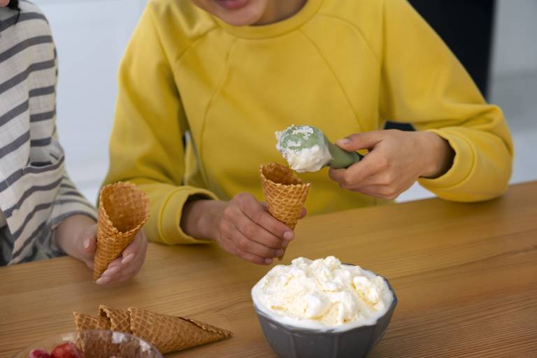 Naj gre za poletno razvajanje, ustvarjalno igro z otroki ali gurmanski večer z domačimi – domač sladoled je vedno dobra ideja.