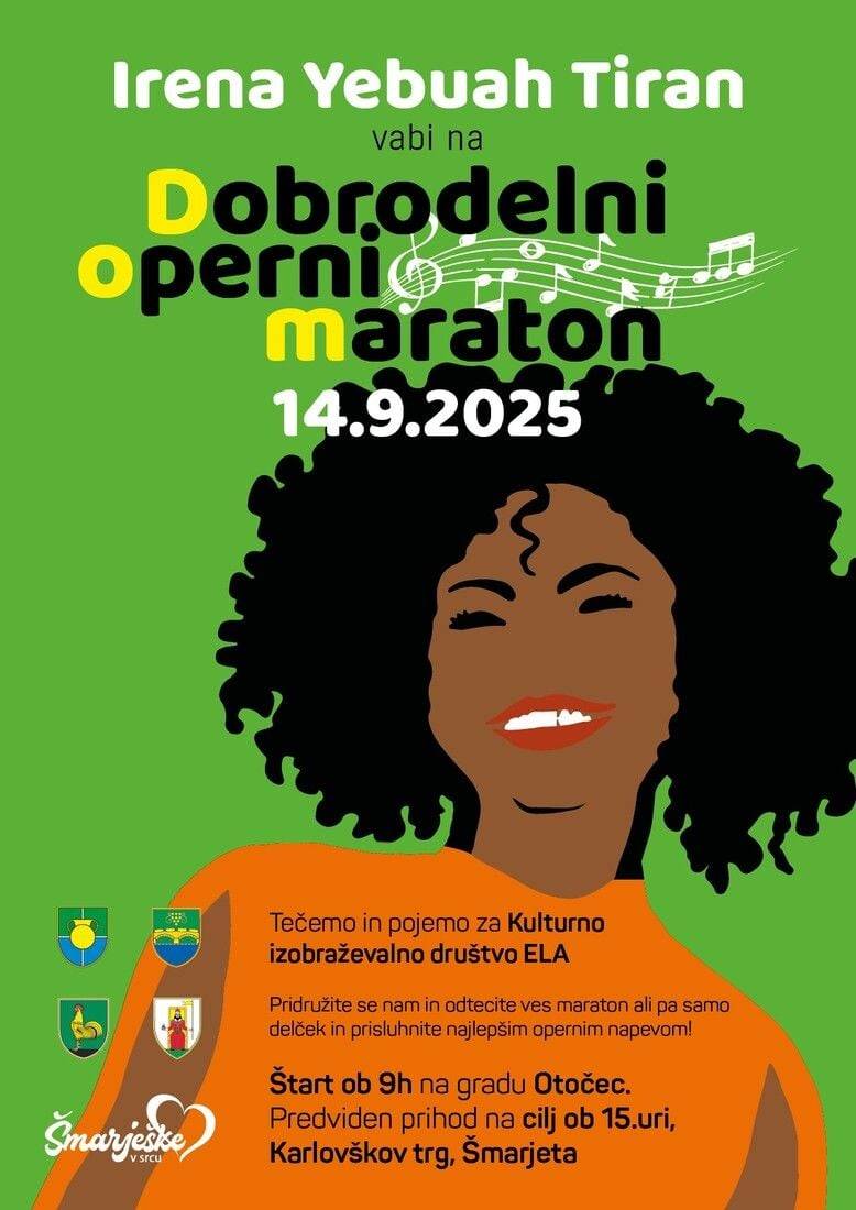 Nedelja, 14. septembra, bo posvečena dobrodelnosti in umetnosti. Ob 9. uri se bo s startom na Gradu Otočec začel Dobrodelni operni maraton, ki ga pripravlja mezzosopranistka Irena Yebuah Tiran.