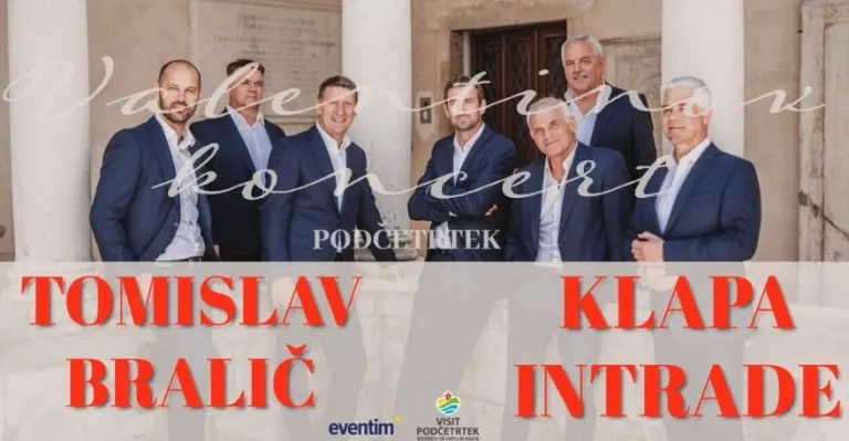 Za ljubitelje dalmatinske glasbe bo ob 20. uri v Športni dvorani Podčetrtek Valentinov koncert Tomislava Bralića in Klape Intrade, ki bo poskrbel za pravo morsko vzdušje.