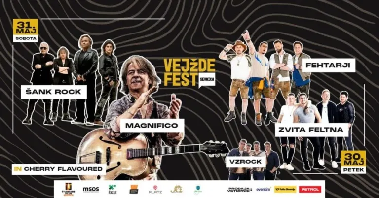 Ob 19. uri bo drugi večer Vejžde Fest 2025 prinesel še močnejši val glasbe z Magnificom, Šank Rockom, Makadamom in Cherry Flavoured, hkrati pa bodo v Krškem in Semiču tri kulturne prireditve: gledališka predstava Težišče, pesniški večer z delom Otona Župančiča v KC Semič, ter koncert Nakána v Kulturnem domu Krško.