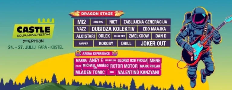 Zvečer bo festivalsko vzdušje v Fari Kostel, kjer se bo ob 18. uri začel drugi dan Castle Festivala z nastopi Dubioze Kolektiv, Zablujene Generacije, Eda Maajke, Drilla in King Foo. Ob isti uri bo v Galeriji ULTI otvoritev razstave umetnice Kiki Klimt Arkanum.