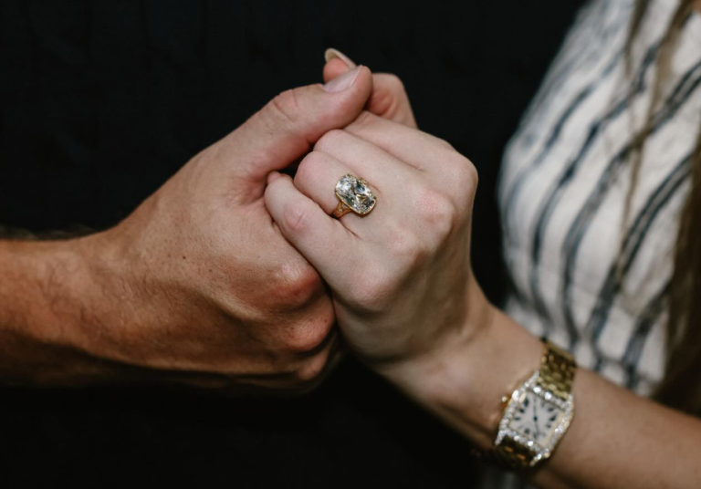 Zaroka je bila daleč od velikopoteznih gest. »Pripravljali so se na večerjo, on pa je preprosto rekel: ‘Pojdiva ven na kozarec vina,’« Pod arkado, okrašeno z rožnatim in belim cvetjem, je trojni zmagovalec Super Bowla nato pokleknil pred svojo štirinajstkratno dobitnico Grammyja.