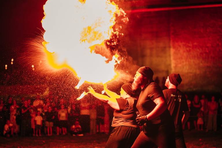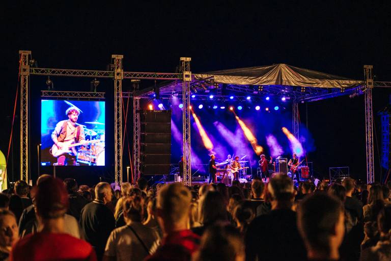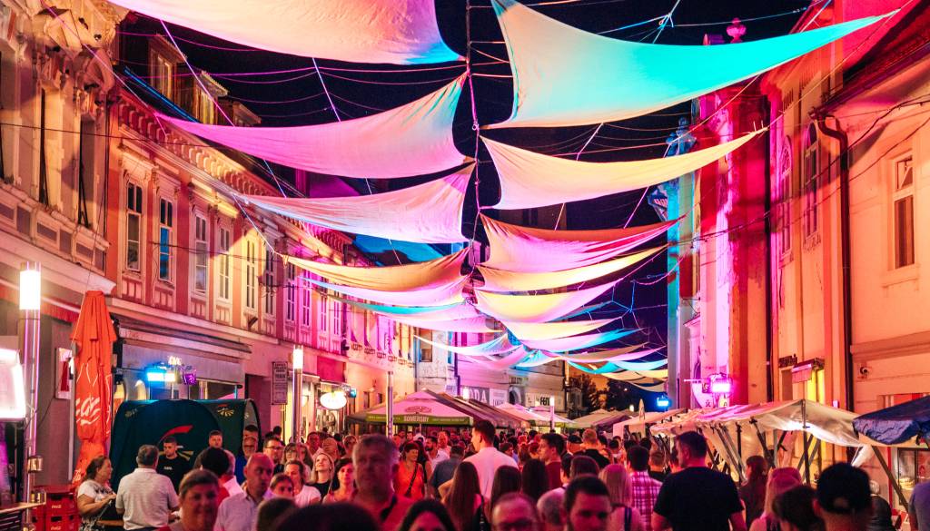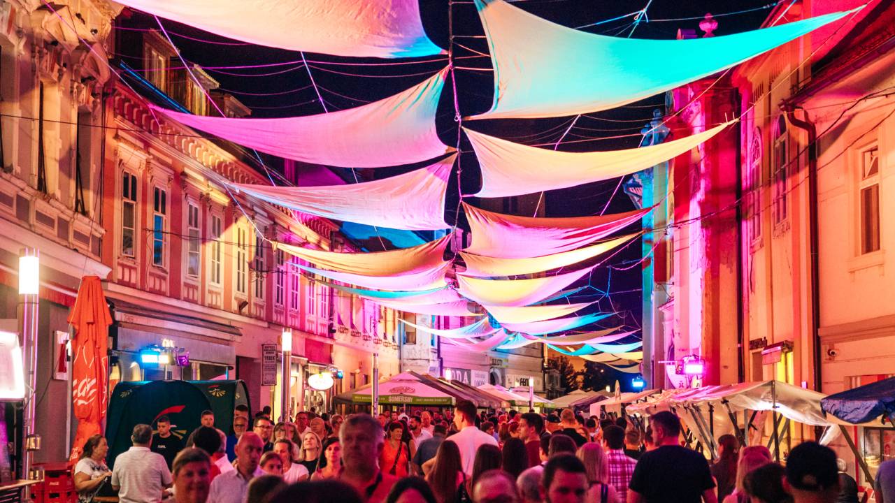 Zvečer središče mesta še vedno živi – na manjših odrih, ulici in družabnih prostorih glasba, zabava in spontano druženje trajajo dolgo v noč.
