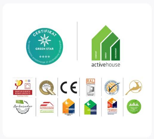 - Prejemniki certifikata Austria Gütezeichen za odličnost v leseni gradnji.