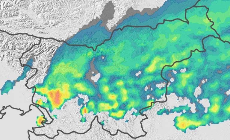 Padavine bodo čez dan vse pogostejše, popoldne bodo ob prehodu fronte od severa zajele vse sosednje pokrajine.