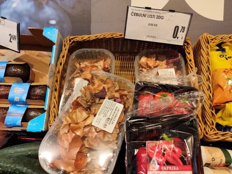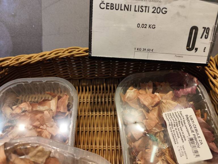 Vendar so letos nekateri kupci ob pogledu na ceno doživeli manjši šok. Za 20 gramov pakiranih čebulnih olupkov je treba odšteti 0,79 evra.