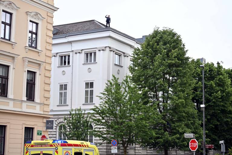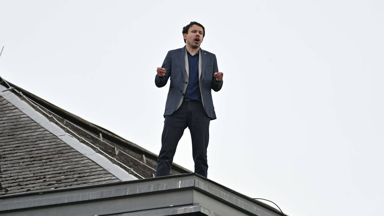 Hoivik je s strehe nagovarjal mimoidoče in med drugim zagrozil, da bo skočil. Kot je med drugim dejal, ne obsoja nikogar, niti premiera Roberta Goloba, a po njegovem mnenju »ni prav, kar delajo s to državo«.