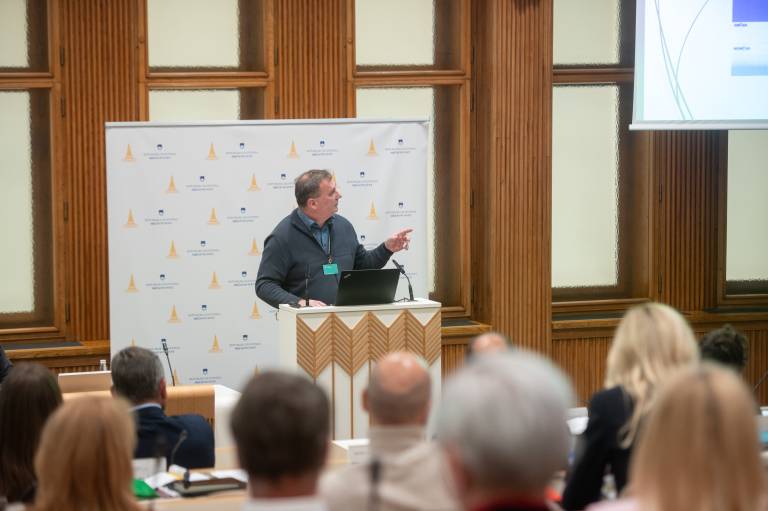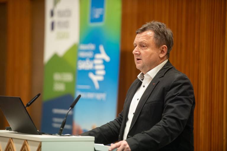 Peter Dermol, župan Mestne občine Velenje in državni svetnik, je predstavil pogled Savinjsko-šaleške in Zasavske regije na pravičen prehod.
