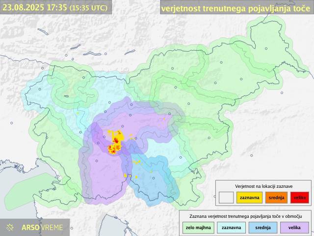 Še posebej močna nevihta je nastala v bližini Ljubljane, ki je nato nadaljevala pot mimo Vrhnike. Agencija za okolje je izdala vijoličasto opozorilo za nevarnost toče za območje Ljubljane z okolico in Notranjsko.