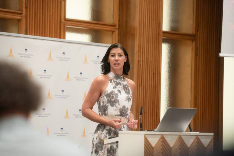 Samostojna pravna svetovalka Dominika Švarc Pipan je spregovorila o pravici javnosti do informiranja, sodelovanja in pravnih sredstev v postopkih umeščanja vetrnih elektrarn v prostor.