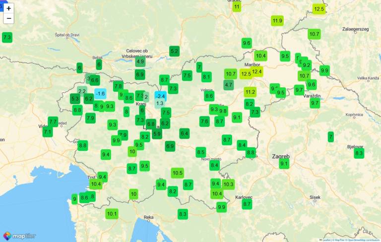 V okolici Maribora in Jeruzalema so izmerili temperature nad 13 stopinj Celzija.