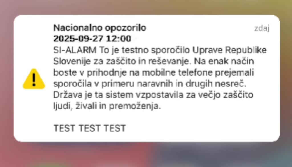 »Na ta dan bomo vsi uporabniki mobilnih telefonov, priključeni na slovenska mobilna omrežja, prejeli testno opozorilno potisno sporočilo.