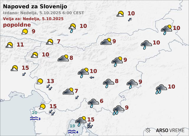 Na Primorskem bo pihala zmerna do močna burja, ki bo popoldne že slabela. Popoldne bodo padavine slabele in od severa ponehale, od severozahoda se bo jasnilo. Temperature bodo od 5 do 10, na Primorskem do 15 stopinj Celzija.