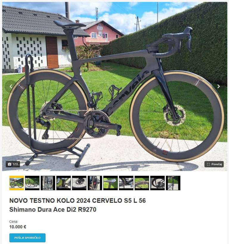 Najdražje med njimi je testno kolo Cervelo, ki se prodaja za 10.000 evrov in je na voljo v Vodicah.