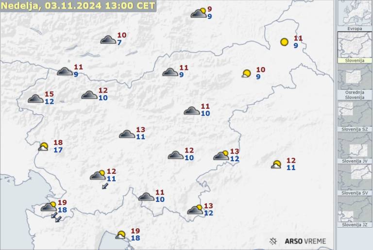 Najvišje dnevne temperature bodo od 11 do 14, na Goriškem in ob morju do 19 stopinj Celzija.