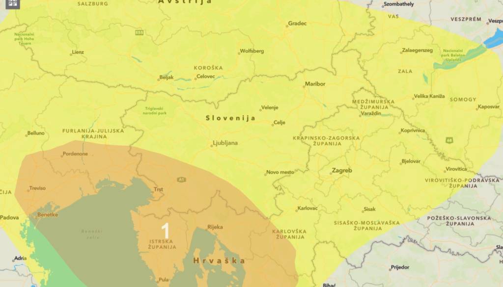 Te bodo potovale proti Tržaškemu zalivu, Istri in Kvarnerju, kjer bo nevarnost neurij največja.