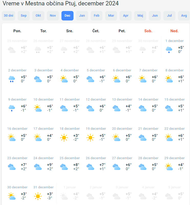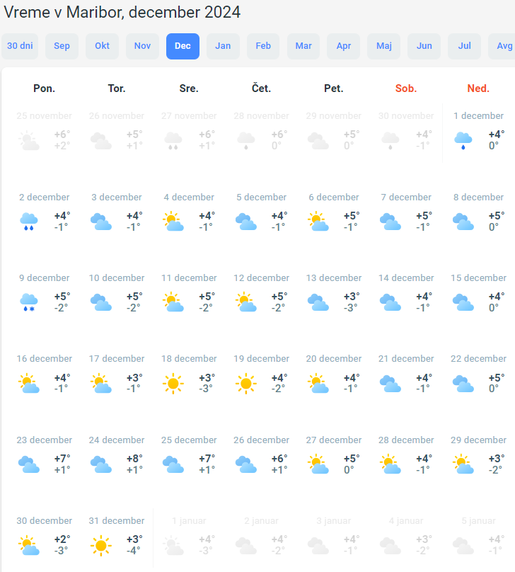 Meteoprog za božično jutro v Murski Soboti, Ptuju, Mariboru in Ljubljani ne napoveduje snega.