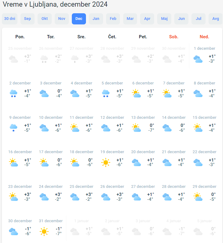 Čeprav podrobne vremenske napovedi za december 2024 še niso na voljo, trenutni dolgoročni modeli kažejo, da bi lahko imeli nekoliko bolj dinamičen vremenski vzorec.