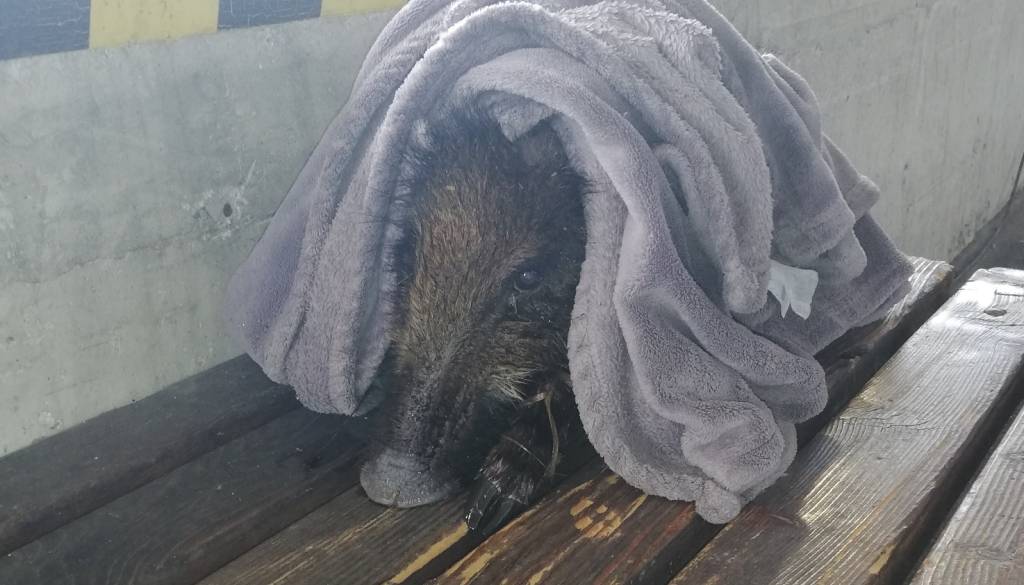 Med redno patruljo na območju Dragonje so policisti doživeli nepričakovano srečanje. Močan naliv je namreč iz gozda pregnal majhnega, izgubljenega mladička divjega prašiča.