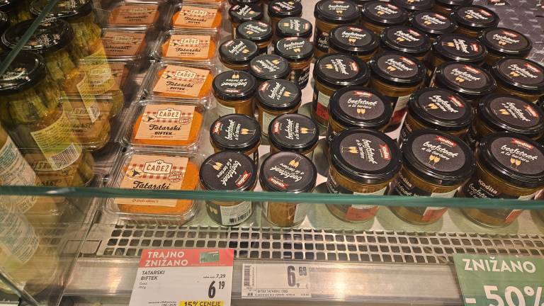 Cene se precej razlikujejo. Tako je ta mesni namaz, ki ga prodaja Hofer, dostopen že za 15,96 evra za kilogram, medtem ko biftek v Mercatorju stane 29,95 evra za kilogram.