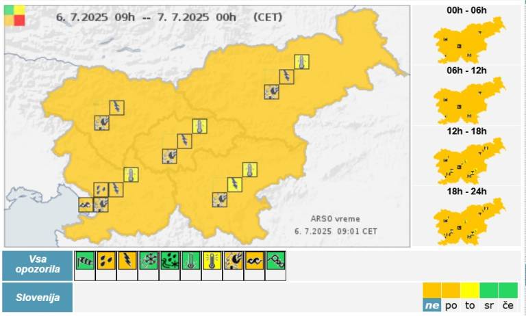 Ponoči se bo nevihtna aktivnost nadaljevala, vmes bodo sicer lahko tudi nekaj urna obdobja suhega vremena, krajevno pa so možni stacionarni nalivi.
