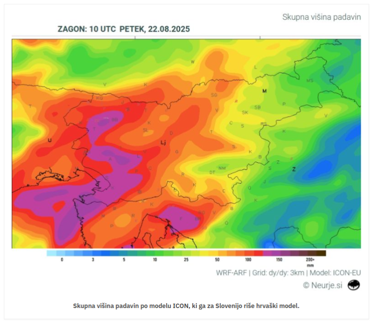 Zaradi lege sekundarnega ciklona je količino padavin težko natančno napovedati. Po ocenah pa bi lahko do petka na zahodu Slovenije lokalno padlo več kot 150 litrov dežja na kvadratni meter.