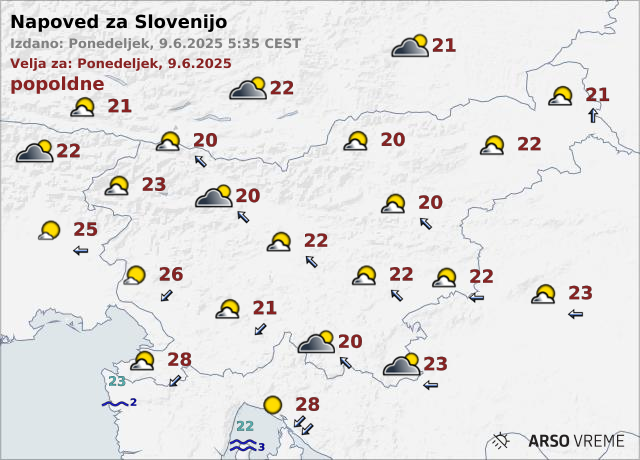 Najvišje dnevne temperature bodo od 20 do 23, na Primorskem od 24 do 28 stopinj Celzija.
